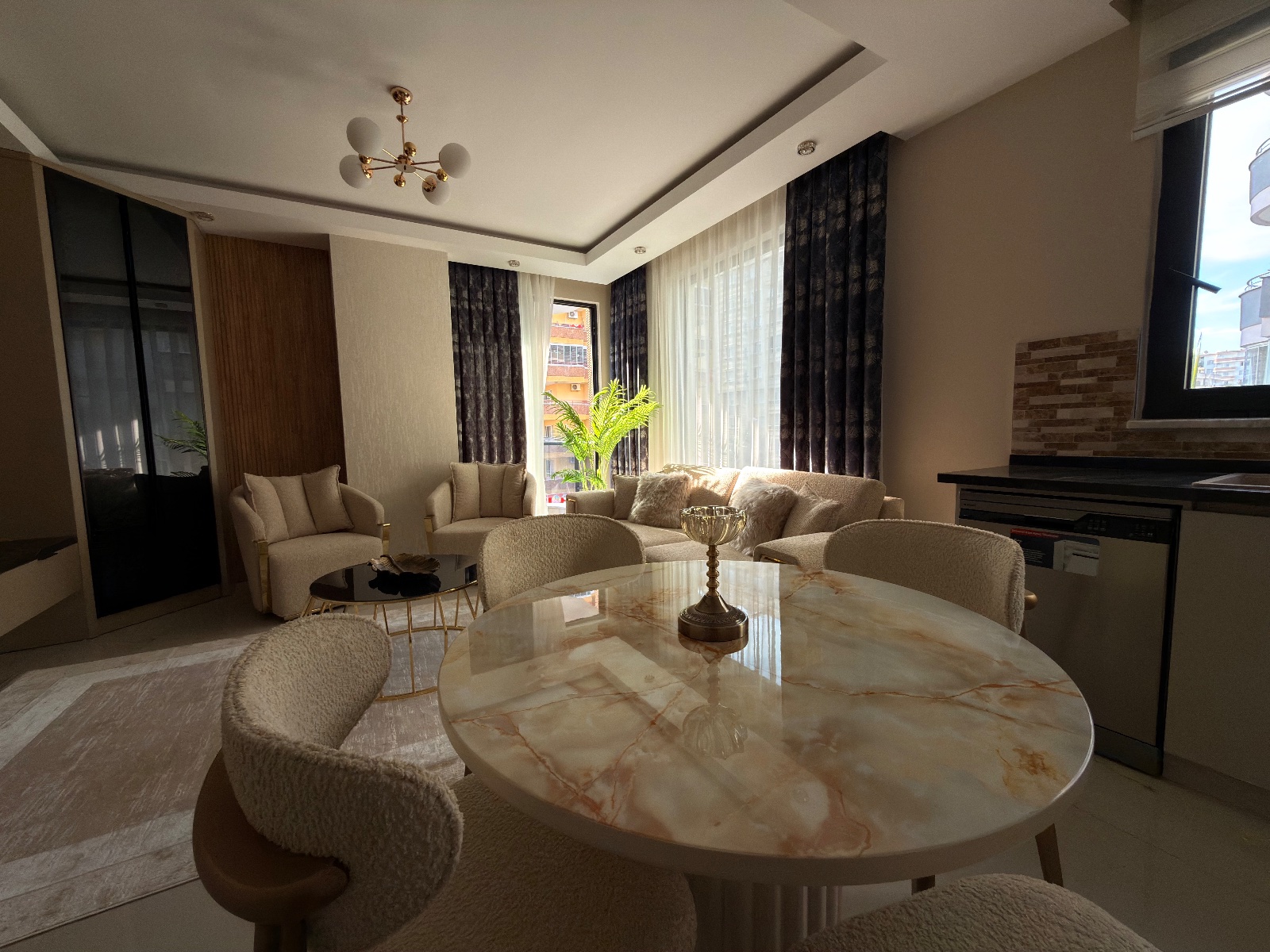 Квартиры продаются с мебелью и техникой, выполнены в современном стиле: качественная отделка, встроенное освещение, кондиционеры и продуманные интерьерные решения.