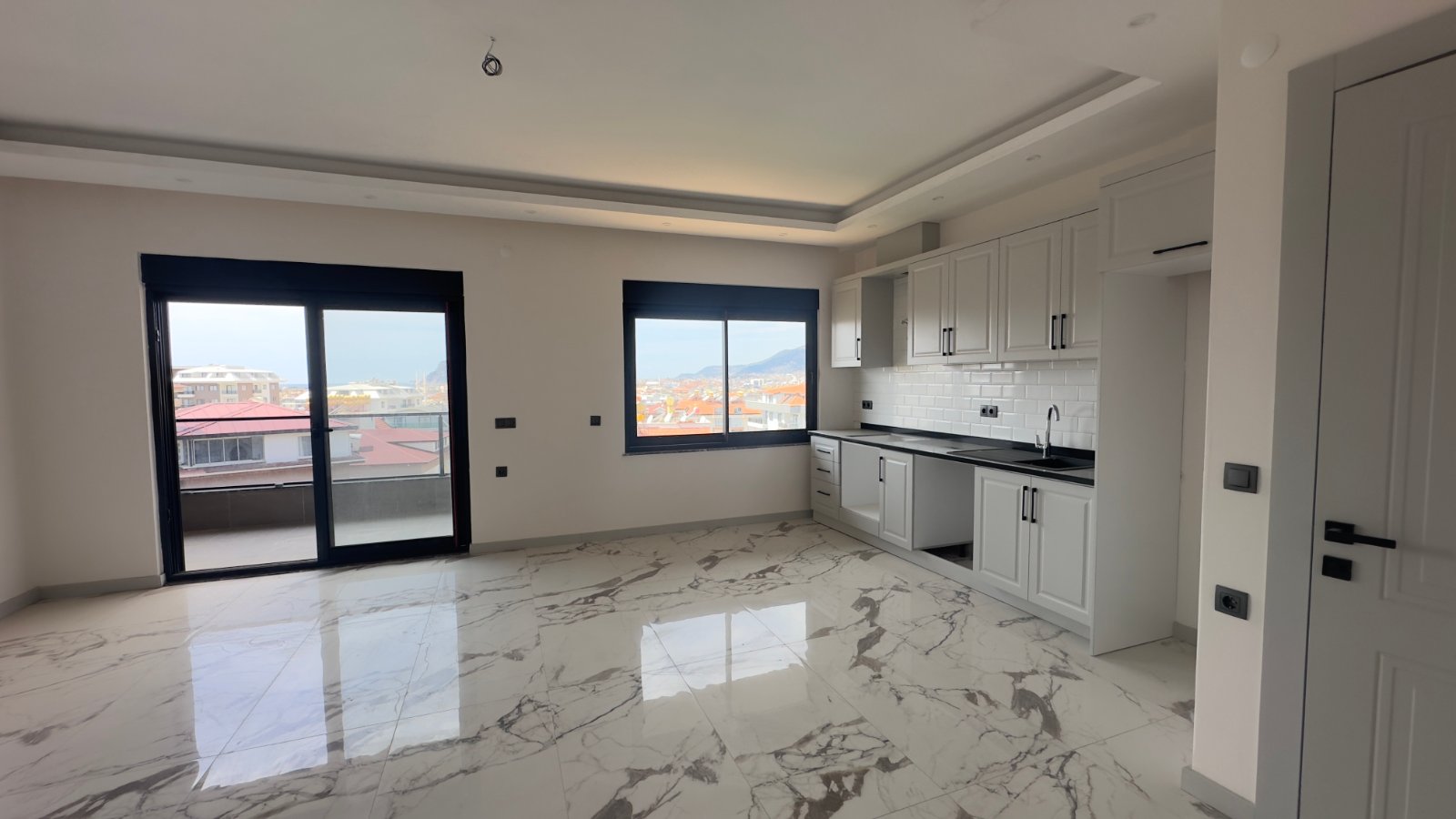 Вторая квартира — 2+1 дуплекс в районе Оба, площадью около 110 м², расположена на верхних этажах и предлагает больше пространства для проживания или аренды.